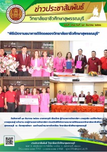 วันอังคารที่ ๑๙ ธันวาคม ๒๕๖๖ นายทรงวุฒิ เรือนไทย ผู้อำนวยการวิทยาลัยฯ นายศุภชัย นนท์ธีระวิชยา, นายสุรเชษฐ์ แก้วปาน, นางสาวกนกวรรณ ส่งสมบูรณ์, นายเจนศักดิ์ แสงคำเฉลียง รองผู้อำนวยการวิทยาลัยฯ เป็นประธานในการมอบเกียรติบัตร รางวัลการประกวดสิ่งประดิษฐ์ของคนรุ่นใหม่ ประจำปีการศึกษา ๒๕๖๖ ระดับสถานศึกษา วิทยาลัยอาชีวศึกษาสุพรรณบุรี ณ โดมรวมน้ำใจ วิทยาลัยอาชีวศึกษาสุพรรณบุรี