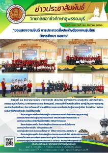 วันเสาร์ที่ ๑๖ ธันวาคม ๒๕๖๖ นำโดยนายทรงวุฒิ เรือนไทย ผู้อำนวยการวิทยาลัยฯ, นายศุภชัย นนท์ธีระวิชยา, นายสุรเชษฐ์ แก้วปาน, นางสาวกนกวรรณ ส่งสมบูรณ์, นายเจนศักดิ์ แสงคำเฉลียงรองผู้อำนวยการวิทยาลัยฯ ร่วมกับคณะครูและบุคลากรทางการศึกษาของวิทยาลัยฯ รับมอบตัวนักศึกษาใหม่ประจำปีการศึกษา ๑/๒๕๖๗ โควต้ารอบ ๑ ณ โดมรวมน้ำใจ วิทยาลัยอาชีวศึกษาสุพรรณบุรี