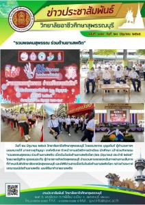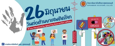 วันที่ ๒๓ มิถุนายน ๒๕๖๕ วิทยาลัยอาชีวศึกษาสุพรรณบุรี โดย ดร.ศรากร บุญปถัมภ์ ผู้อำนวยการฯ มอบหมายให้ นางสาวสุกัญญา วงศ์ศรีเทพ หัวหน้างานสวัสดิการนักเรียน นักศึกษา เข้าร่วมกิจกรรม รวมพลคนสุพรรณ ร่วมต้านยาเสพติด เนื่องในวันต่อต้านยาเสพติดโลก (๒๖ มิถุนายน) ประจำปี ๒๕๖๕ โดยนายณัฐภัทร สุวรรณประทีป ผู้ว่าราชการจังหวัดสุพรรณบุรี นำขบวนพาเหรดออกเดินทางผ่านตามเส้นทางที่กำหนดไปยังวิทยาลัยเทคนิคสุพรรณบุรี และมีพิธีอ่านสารเนื่องในวันต่อต้านยาเสพติดโลก กล่าวคำประกาศเจตนารมณ์ต่อต้านยาเสพติด และพิธีเผาทำลายยาเสพติ
