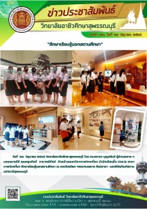 วันที่ ๒๔ มิถุนายน ๒๕๖๕ วิทยาลัยอาชีวศึกษาสุพรรณบุรี โดย ตร.ศรากร บุญปถันภ์ ผู้อำนวยการฯ มอบหมายให้ คุณครูอภิรดี งามาตทัศน์ หัวหน้าแผนทวิชาการท่องเที่ยว นำนักเรียนชั้น ปวซ.๒ สาขาการท่องเที่ยว ศึกษาเรียนรู้นอกสถานศึกษา ณ หอเกียรติยศ ฯพณฯ บรรหาร ศิลปอาชา และพิพิธภัณฑ์สถานแห่งชาติสุพรรณบุรี