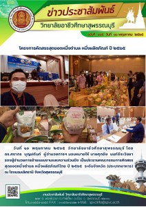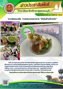 วันที่ ๑๘ พฤษภาคม ๒๕อ๕ วิทยาลัยอาชีวศึกษาสุพรรณบุรี โดย ดร.ศรากร บุญปถัมภ์ ผู้อำนวยการฯ มอบหมายให้คุณครูสมภพ อุตสาห: ร่วมเป็นคณะกรรมการตัดสิน การประกวด เมนูสร้างสรรค์จากแห้ว โครงการเกษตรสร้างสรรค์วัฒนธรรมสร้างสุข พร้อมทั้งนำ นักศึกษา ปวส. ๑ อาหารและโภชนาการ เข้าร่วมการประกวด 'เมนูสำรับข้าวข้างวัง' ณ ศูนย์การเรียนรู้เกษตรสนามชัย ตำบลสนามชัย อำเภอเมือง จังหวัดสุพรรณบุรี