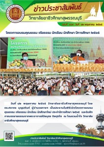 วันที่ ๑๒ พฤษภาคม ๒๕๖๕ วิทยาลัยอาชีวศึกษาสุพรรณบุรี โดย ดร.ศรากร บุญปถัมภ์ ผู้อำนวยการฯ เป็นประธานในพิธีเปิดโครงการอบรม คุณธรรม จริยธรรม นักเรียน นักศึกษาใหม่ ประจำปีการศึกษา ๒๕๖๕ และรับฟัง การบรรยายธรรมจากพระอาจารย์ปิยบุตร ปิยปุตโต ณ โดมรวมน้ำใจ วิทยาลัย
