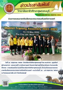 วันที่ ๑ต พฤษภาคม ๒๕อ๕ วิทยาลัยอาชีวศึกษาสุพรรณบุรี โดย ดร.ศรากร บุญปถัมภ์ ผู้อำนวยการฯ มอบหมายให้ นางรัตนกาญจณ์ รัตนประดิษฐ์ ครูที่ปรึกษาสโมสร นำนายเอกชัย ฟักหอม นายกสโมสรโรทาแรควิทยาลัยอาชีวศึกษาสุพรรณบุรี เข้าร่วมกิจกรรมการอบรม นายกรับเลือกและคณะกรรมการสโมสรโรทาแรคท์ ระหว่างวันที่ ๑๓ - ๑๕ พฤษภาคม ๒๕๖๕ ณ โรงแรมเมราวลัย ชะอำ จังหวัดเพชรบุรี