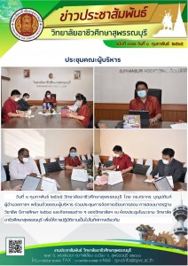 วันที่ ๔ กุมภาพันธ์ ๒๕๖๕ วิทยาลัยอาชีวศึกษาสุพรรณบุรี โดย ดร.ศรากร บุญปถัมภ์ ผู้อำนวยการฯ พร้อมด้วยคณะผู้บริหาร ร่วมประชุมการจัดการเรียนการสอน การสอบมาตรฐาน วิชาชีพ ปีการศึกษา ๒๕๖๕ และกิจกรรมต่าง ๆ ของวิทยาลัยฯ ณ ห้องประชุมใบมะขาม วิทยาลัย อาชีวศึกษาสุพรรณบุรี เพื่อให้การปฏิบัติงานเป็นไปในทิศทางเดียวกัน
