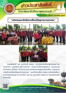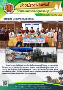 วันพุธที่ ๙ กุมภาพันธ์ ๒๕๖๕ วิทยาลัยอาชีวศึกษาสุพรรณบุรี โดย ดร. ศรากร บุญปถัมภ์ ผู้อำนวยการฯ พร้อมคณะผู้บริหาร คณะครู บุคลากร และนักเรียน นักศึกษา ชมSม To Be Number One วิทยาลัยอาชีวศึกษาสุพรรณบุรี ร่วมบริจาคเงินและเครื่องอุปโภค บริโภค ช่วยเหลือนางสาวกัลยา โพธิ์หอม นักเรียนชั้น ปวช.ต แผนกวิชาธุรกิจค้าปลีก จากเหตุบ้านพัก อาศัยประสบอัคคีภัย ณ อำเภอด่านช้าง จังหวัดสุพรรณบุรี