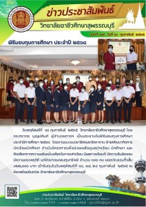 วันพฤหัสบดีที่ ๑0 กุมภาพันธ์ ๒๕๖๕ วิทยาลัยอาชีวศึกษาสุพรรณบุรี โดย ดร.ศรากร บุญปถัมภ์ ผู้อำนวยการฯเป็นประรานในพิธีมอบทุนการศึกษา ประจำปีการศึกษา ๒๕๖๔โดยงานแนะแนวอาชีพและจัดหางาน ฝ่ายพัฒนากิจการ นักเรียนนักศึกษา ดำเนินโครงการเพื่อช่วยเหลือดูแลนักเรียน นักศึกษา และ คัดเลือกจากความขยันหมั่นเพียรในการเล่าเรียน มีผลการเรียนดี มีความรับผิดชอบ มีความประพฤติดี แต่ยังขาดแคลนทุนทรัพย์ จำนวน ๑0๖ คน ยอดเงินรวมทั้งสิ้น ๓๒๒,๐๐๐ บาท เข้ารับทุนในวันพฤหัสบดีที่ ๑0, ๑๗, ๒๔ กุมภาพันธ์ ๒๕๖๕ ณ ห้องสร้อยอินทนิล วิทยาลัยอาชีวศึกษาสุพรรณบุรี