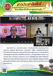 วันอาทิตย์ที่ ๑ต กุมภาพันธ์ ๒๕๖๕ วิทยาลัยอาชีวศึกษาสุพรรณบุรี โดย ดร.ศรากร บุญปถัมภ์ ผู้อำนวยการฯ รองฯวันทนา โพธิ์รัง และครูหัวหน้าสาขาวิชา เข้าร่วมโครงการเตรียมความพร้อมบัณฑิตก่อนก้าวสู่ตลาดแรงงานของนักศึกษา ระดับปริญญาตรี สถาบันการอาชีศึกษาภาคกลาง ๔ ประจำปีการศึกษา ๒๕๖๔ ระบบ ออนไลน์ Video Conference (โปรแกรม Zoom) เพื่อให้ผู้สำเร็จการศึกษามีจิตสำนึก ที่ดีต่อการประกอบอาชีพอย่างมีจรรยาบรรณ ตลอดจนเสริมสร้างขวัญและกำลังใจ ให้กับนักศึกษาที่สำเร็จการศึกษาได้เตรียมความพร้อม สร้างความมั่นใจในการก้าว สู่ตลาดแรงงาน