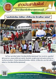 วันที่ ๒๐ กุมภาพันธ์ ๒๕๖๕ วิทยาลัยอาชีศึกษาสุพรรณบุรี โดย ดร.ศรากร บุญปถัมภ์ ผู้อำนวยการฯ มอบหมายให้นายภานุพันธ์ พันธนิตย์ รองผู้อำนวยการฝ่ายบริหารทรัพยากร และทีมงานทะเบียนฯ ดำเนินการรับมอบตัวนักเรียน นัศึกษา เข้าศึกษาต่อ ประจำปีการศึกษา ๒๕๖๕ ณ วิทยาลัยอาชีศึกษาสุพรรณบุรี