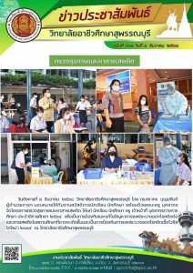 วันอังคารที่ ๘ ธันวาคม ๒๕๖ㆍ๕ วิทยาลัยอาชีวศึกษาสุพรรณบุรี โดย ดร.ศรากร บุญปถัมภ์ ผู้อำนวยการฯ มอบหมายให้ทีมงานสวัสดิการนักเรียน นักศึกษา พร้อมด้วยคณะครู บุคลากร จัดโครงการตรวจสุขภาพและหาสารเสพติด ให้แก่ นักเรียน นักศึกษา ครู เจ้าหน้าที่ บุคลากรทางการ ศึกษา ประจำปีการศึกษา ๒๕๖๔ เพื่อเป็นการป้องกันและแก้ไขปัญหาการแพร่ระบาดของโรคติดต่อ และสารเสพติดในสถานศึกษาที่อาจจะเกิดขึ้นและเป็นการป้องกันการแพร่ระบาดของโรคติดเชื้อไวรัส โคโรน่า ๒๐๑๙ ณ วิทยาลัยอาชีวศึกษาสุพรรณบุรี
