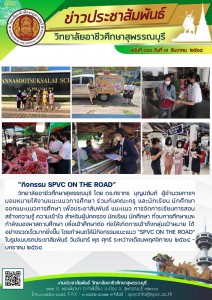 'กิจกรรม SPVC ON THE ROAD' วิทยาลัยอาชีวศึกษาสุพรรณบุรี โดย ดร.ศรากร บุญปถัมภ์ ผู้อำนวยการฯ มอบหมายให้งานแนะแนวการศึกษา ร่วมกับคณะครู และนักเรียน นักศึกษา ออกแนะแนวการศึกษา เพื่อประชาสัมพันธ์ แนะแนว การจัดการเรียนการสอน สร้างความรู้ ความเข้าใจ สำหรับผู้ปกครอง นักเรียน นักศึกษา ที่จบการศึกษาและ กำลังมองหาสถานศึกษา เพื่อเข้าศึกษาต่อ ก่อให้เกิดการเข้าถึงกลุ่มเป้าหมาย ได้ อย่างรวดเร็วมากยิ่งขึ้น โดยกำหนดให้มีกิจกรรมแนะแนว 'SPVC ON THE ROAD' ในรูปแบบรถประชาสัมพันธ์ วันจันทร์ พุธ ศุร์ ระหว่างเดือนพฤศจิกายน ๒๕๖๔ - มกราคม ๒๕๖๔