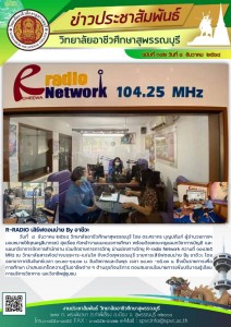 วิทยาลัยอาชีวศึกษาสุพรรณบุรี โดย ดร.ศรากร บุญปถัมภ์ ผู้อำนวยการฯ มอบหมายให้คุณครู สินาภรณ์ สุขเรื่อย หัวหน้างานแนะแนวการศึกษา พร้อมด้วยคณะครู นักเรียน นักศึกษา ร่วมจัด รายการการวิทยุ ผ่านช่องทางวิทยุ R-radio Network ความถี่ ๑๑๔.๒๕MHz ณ วิทยาลัยสารพัดช่าง บรรหาร-แจ่มใส จังหวัดสุพรรณบุรี ในรายการ เสิร์ฟตอนบ่าย By อาชีวะ โดยออกอากาศวันจันทร์ เวลา ๑ต.๐๐-๑๔.๐0 น. วันอังคารและวันพุธ เวลา ๑๔.0ㆍ -๑๕..0 น. ซึ่งเป็นรายการเพื่อการศึกษา นำเสนอเกร็ดความรู้ในอาชีพต่าง ๆ ด้านธุรกิจบริการ ตอบสนองนโยบายการเพิ่มปริมาณผู้เรียน การ บริการวิชาการ และวิชาชีพสู่ชุมชน