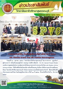 วันพุธที่ ๒0 ตุลาคม ๒๕๖๔ วิทยาลัยอาชีวศึกษาสุพรรณบุรี โดย ดร.ศรากร บุญปถัมภ์ ผู้อำนวยการฯ พร้อมด้วยคณะผู้บริหาร คณะครู ร่วมให้การต้อนรับ H.E. Mr. Ganesh Prasad Dhakal เอกอัครราชทูตสหพันธ์สาธารณรัฐประชาธิปไตยเนปาลประจำราชอาณาจักรไทย และ Madam Anima Acharya Dhakal ให้เกียรติเยี่ยมชมวิทยาลัยฯ พร้อมทั้งคณะครู นักเรียน นักศึกษาแผนกวิชาแฟชั่นและ สิ่งทอ วิทยาลัยอาชีวศึกษาสุพรรณบุรี ดำเนินการออกแบบและตัดเย็บชุดประจำชาติ เพื่อสวมใส่ในพิธี เปิดงานมหกรรมผ้าไหม ไหมไทยสู่เส้นทางโลก ครั้งที่ ๑๑ ปี ๒๕๖๔ ซึ่งจะจัดขึ้นในวันที่ ๔ ธันวาคม ๒๕๖๔
