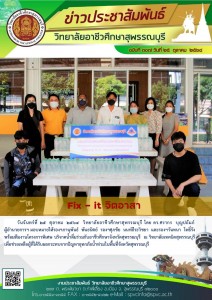 วันพุธที่ ๒๗ ตุลาคม ๒๕๖๔ วิทยาลัยอาชีวศึกษาสุพรรณบุรี โดย ดร.ศรากร บุญปถัมภ์ ผู้อำนวยการฯ มอบหมายให้รองฯวันทนา โพธิ์รัง รองผู้อำนวยการฝ่ายพัฒนากิจการนักเรียน นักศึกษา ทีมงานโครงการพิเศษ และบริการชุมชน ดำเนินโครงการ Fix-it จิตอาสา (กล่องยังชีพ) ร่วมกับบริษัท เอสวายพริ้นท์ จำกัด, ร้านเอ สวายก๊อปปี้, ร้านบุญเฮง๑๘, ร้านเก๋ไก๋, ร้านอารีวัลย์,ร้านเด่นเสมอ, ร้านสุพรรณสปอร์ต ให้การสนับสนุนอาหาร ชุด จำนวน ๒00 ชุด จัดทำโดยคณะครูแผนกวิชาอาหารและโภชนาการ วิทยาลัยอาชีวศึกษาสุพรรณบุรี เพื่อ ช่วยเหลือประชาชนที่ได้รับผลกระทบจากภัยน้ำท่วม ภายใต้การดำเนินโครงการบูรณาการการพัฒนาทักษะทาง วิชาชีพกับการเสริมสร้างคุณลักษะอันพึงประสงค์ของผู้เรียนอาชีวศึกษา (Fix it -จิตอาสา) ณ โรงพยาบาล ส่งเสริมสุขภาพตำบลโพธิ์พระยา อ.เมือง จ.สุพรรณบุรี