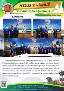 วันพฤหัสบดีที่ ๔ พฤศจิกายน ๒๕๖๔ วิทยาลัยอาชีวศึกษาสุพรรณบุรี โดย ดร.ศรากร บุญปถัมภ์ ผู้อำนวยการฯ ร่วมพิธีเปิดงาน โครงการอบจ.สุพรรณบุรี TO BE NUMBER ONE กิจ กรรม TO BE NUMBER ONE TEEN DANCERCISE SUPHANBURE CHAMPIONSHIP ๒๐๒๒ โดยนางวันทนา โพธิ์รัง รองผู้อำนวยการฝ่ายพัฒนากิจการนักเรียน นักศึกษา พร้อมด้วยคณะครู นำนักเรียน นักศึกษา เข้าร่วมการแข่งขัน ณ องค์การบริหาร ส่วนจังหวัดสุพรรณบุรี โดยได้รับรางวัลรองชนะเลิศอันดับ ๑ เป็นตัวแทนจังหวัดสุพรรณบุรีเข้าร่วมการแข่งขัน ในระดับภาคกลางและภาคตะวันออก ระหว่างวันที่ ๑9-๑๒ รันวาคม ๒๕๖๔ ณ จังหวัดชลบุรี