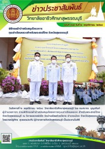 วันจันทร์ที่ ๒๕ ตุลาคม ๒๕๖๔ วิทยาลัยอาชีวศึกษาสุพรรณบุรี โดย ดร.ศรากร บุญปถัมภ์ ผู้อำนวยการฯ มอบหมายให้รองฯภานุพันธ์ พันธนิตย์ รองฯศุภชัย นนท์ธีระวิชยา และรองฯวันทนา โพธิ์รัง พร้อมทีมงานโครงการพิเศษ บริจาคน้ำดื่มร่วมกับอาชีวศึกษาจังหวัดสุพรรณบุรี ณ วิทยาลัยเทคนิคสุพรรณบุรี