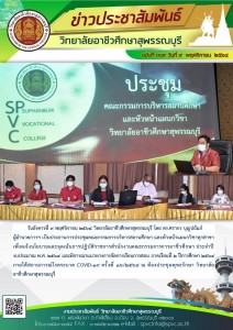 วันอังคารที่ ๙ พฤศจิกายน ๒๕๖๔ วิทยาลัยอาชีวศึกษาสุพรรณบุรี โดย ดร.ศรากร บุญปถัมภ์ ผู้อำนวยการฯ เป็นประธานการประชุมคณะกรรมการบริหารสถานศึกษา และหัวหน้าแผนกวิชาทุกสาขา เพื่อแจ้งนโยบายและจุดเน้นการปฏิบัติราชการสำนักงานคณะกรรมการการอาชีวศึกษา ประจำปี งบประมาณ พ.ศ. ๒๕๖๔ และพิจารณาแนวทางการจัดการเรียนการสอน ภาคเรียนที่ ๒ ปีการศึกษา ๒๕๖๔ ภายใต้สถานการณ์โรคระบาด COVID-๑๙ ครั้งที่ ๑๖/๒๕๖๔ ณ ห้องประชุมพุทธรักษา วิทยาลัย อาชีวศึกษาสุพรรณบุรี