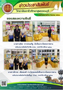 วิทยาลัยอาชีวศึกษาสุพรรณบุรี ขอแสดงความยินดีแก่ นางสาวรุจิอร ขาวประเสริฐ นักเรียนระดับประกาศนียบัตรวิชาชีพ (ปวช.) ได้รางวัลพระราชทาน และนางสาวพิราอร เพิ่มทองคำ นักศึกษาระดับประกาศนียบัตรวิชาชีพชั้นสูง (ปวส.) ได้รางวัลชมเชยนักศึกษารางวัลพระราชทาน