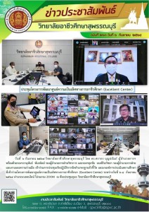 ิทยาลัยอาชีวศึกษาสุพรรณบุรี นำโดย ดร.ศรากร บุญปถัมภ์ ผู้อำนวยการฯ พร้อมด้วยรองฯภานุพันธ์ พันธนิตย์ รองผู้อำนวยการฝ่ายวิชาการ และรองฯศุภชัย นนท์ธีระวิชยา รองผู้อำนวยการฝ่าย แผนงานและความร่วมมือ เข้าร่วมการประชุมเชิงปฏิบัติการจัดทำมาตรฐานตัวชี้วัด และเกณฑ์การประเมินสถานศึกษา ที่เข้าร่วมโครงการพัฒนาศูนย์ความเป็นเลิศทางการอาชีวศึกษา (Excellent Center) ระหว่างวันที่ 6-8 กันยายน 2564 ผ่านระบบออนไลน์ โปรแกรม ZOOM ณ ห้องประชุมอุบล วิทยาลัยอาชีวศึกษาสุพรรณบุรี