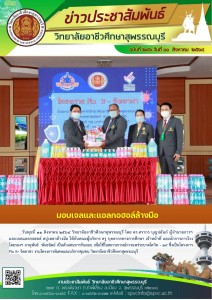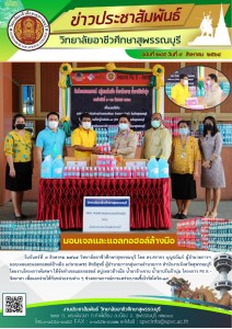 วิทยาลัยอาชีวศึกษาสุพรรณบุรี โดย ดร.ศรากร บุญปถัมภ์ ผู้อำนวยการฯ มอบเจลแอลกอฮอล์ สบู่เหลวล้างมือ ให้กับคณะผู้บริหาร ครู บุคลากรทางการศึกษา เจ้าหน้าที่ และนักการภารโรง โดยรองฯภานุพันธ์ พันธนิตย์ เป็นตัวแทนการรับมอบ เพื่อใช้ในสถานการณ์การแพร่ระบาดโควิด - ๑๙ ซึ่งเป็นโครงการ Fix it- จิตอาสา งานโครงการพิเศษและบริการชุมชน วิทยาลัยอาชีวศึกษาสุพรรณบุรี