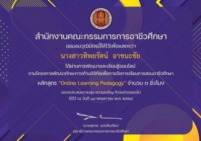เข้าร่วมอบรมโครงการพัฒนาทักษะทางด้านดิจิทัล เพื่อการจัดการเรียนการสอนด้านอาชีวศึกษา ระหว่างวันที่ 17 - 31 พฤษภาคม 2564 โดย สำนักพัฒนาสมรรถนะครูและบุคลากรทางการศึกษา สำนักงานคณะกรรมการการอาชีวศึกษา