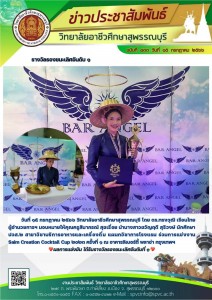 วันที่ ๑๕ กรกฎาคม ๒๕๖๖ วิทยาลัยอาชีวศึกษาสุพรรณบุรี โดย ดร.ทรงวุฒิ เรือนไทย ผู้อำนวยการฯ มอบหมายให้คุณครูสินาภรณ์ สุขเรื่อย และคุณครูธนวรรณ ไหมอ่อน นำ นางสาวขวัญฤดี สุริวงษ์ นักศึกษา ปวส.๒ สาขาวิชาบริการอาหารและเครื่องดื่ม แผนกวิชาการโรงแรม ร่วมการแข่งงาน Saim Creation cocktail cup ๒๐๒๓ ครั้งที่ ๑ ณ อาคารลิเบอร์ตี้ พลาซ่า กรุงเทพฯ ผลการแข่งขัน ได้รับรางวัลรองชนะเลิศอันดับที่ ๑