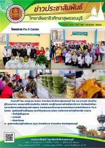 วันเสาร์ที่ ๒๒ กรกฎาคม ๒๕๖๖ วิทยาลัยอาชีวศึกษาสุพรรณบุรี โดย ดร.ทรงวุฒิ เรือนไทย ผู้อำนวยการฯมอบหมายให้นายอริยวัฒ เฉลิมกิจ รองผู้อำนวยการฝ่ายพัฒนากิจการนักเรียนนักศึกษา และงานโครงการพิเศษและบริการชุมชน ร่วมกับแผนกวิชาการอาหารและโภชนาการจัดทำโครงการ Fix It Center ศูนย์ซ่อมสร้างเพื่อชุมชน ประจำปีงบประมาณ ๒๕๖๖ รายวิชา อาหารว่างสร้างอาชีพ รายการ ~ น้ำเต้าหู้เพื่อสุขภาพ ~ปาท่องโก๋ ~สังขยาใบเตย ณ ศูนย์การเรียนหมู่บ้านไผ่ขวาง หมู่ ๒ ตำบลไผ่ขวาง อำเภอเมือง จังหวัดสุพรรณบุรี